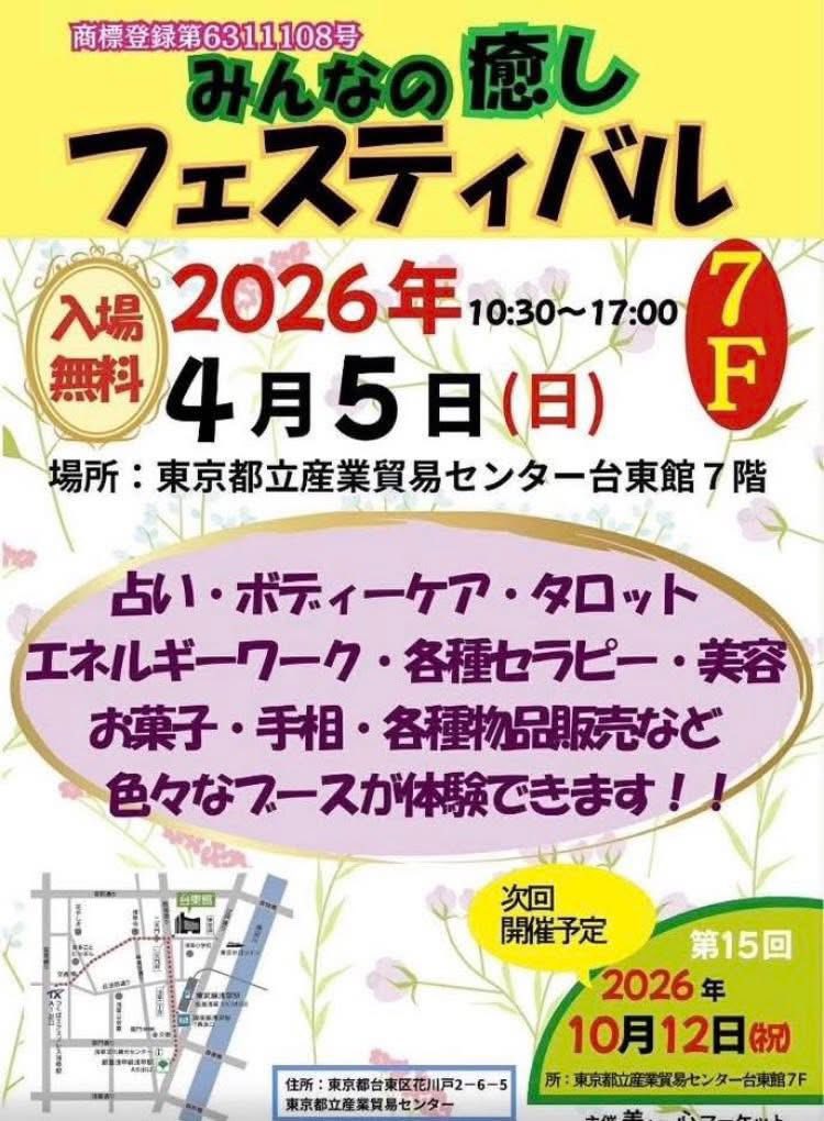 いよいよ今週末に控えた第14回 みんなの癒しフェスティバルⓇこちらの情報をお伝えいたします!